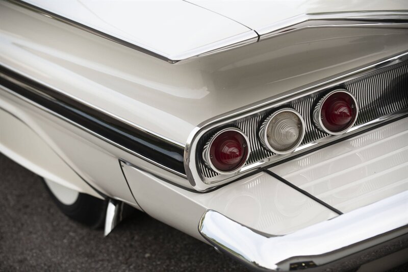 Mitchell’s influence slowly but surely asserted itself by 1960 as he flattened the formerly curved fins of 1959 and resurrected the three round taillight motif from 1958 to replace 1959’s cat’s eye taillamps. Other 1960 highlights included a 119-inch wheelbase; 210.8-inch length; X-frame design; two-piece driveshaft; four-coil spring suspension;